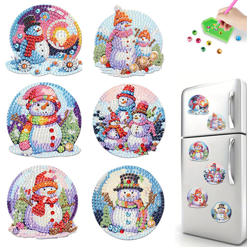 6Pcs Acrylic Snowman Diamond Painting Art Fridge Magnet for Adults Beginners
