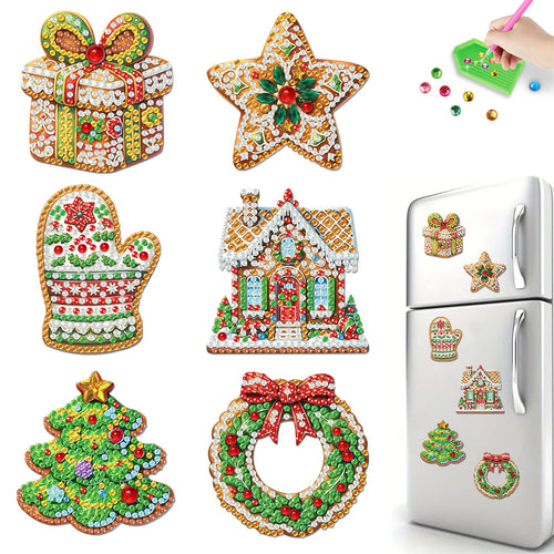 6Pcs Acrylic Christmas Cookies Diamond Painting Art Fridge Magnet for Adults