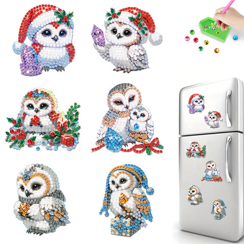 6Pcs Acrylic Christmas Owl Diamond Painting Art Fridge Magnet for Adults