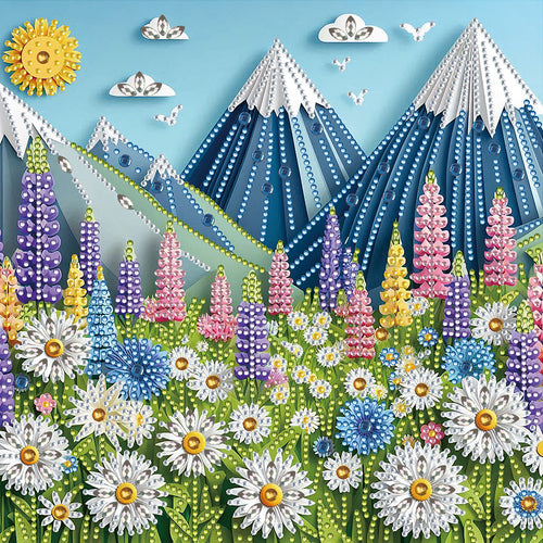 Diamond Painting - Partial Special Shaped - Paper-cut wind daisy snow mountain (30*30CM)