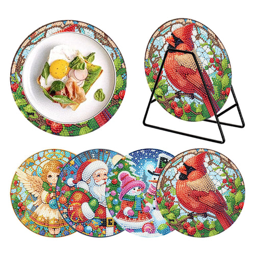 Acrylic Christmas Animals DIY Diamond Dot Kits Round Diamond Painting Table Mats