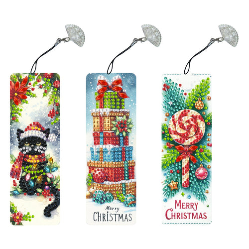 3Pcs Special Shape Merry Christmas Diamond Painting Bookmark for Bookworms