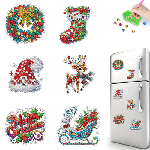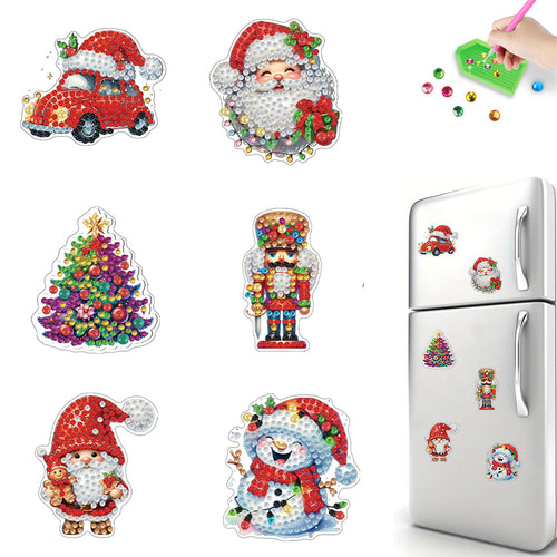 6Pcs Acrylic Christmas Fridge Stickers Diamond Art Magnets Decals for Home Decor