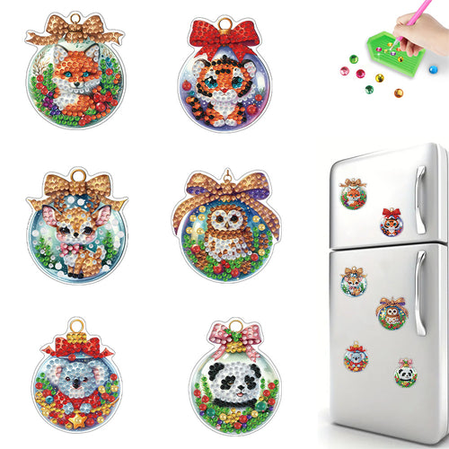 6Pcs Acrylic Christmas Animals Fridge Stickers Diamond Art Magnets Decals