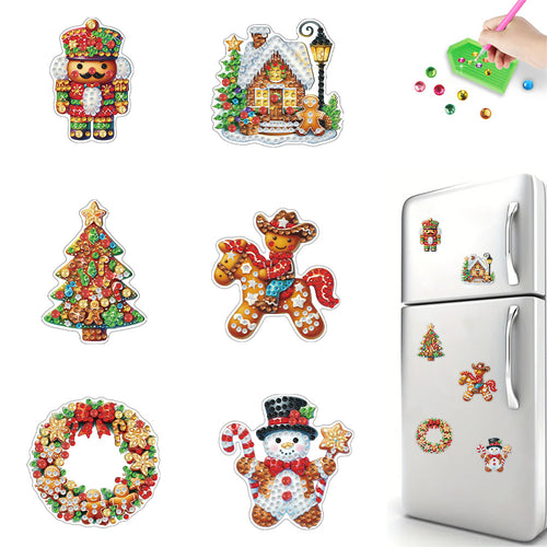 6Pcs Acrylic Christmas Cookies Fridge Stickers Diamond Art Magnets Decals