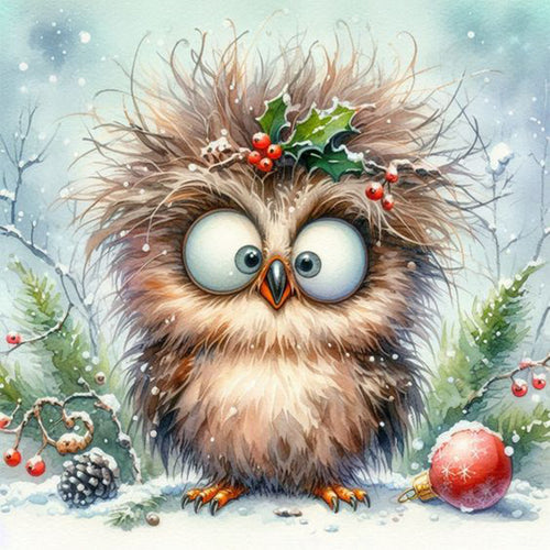Diamond Painting - Full Round - Christmas funny owl (30*30CM)