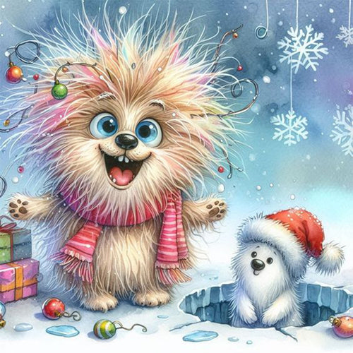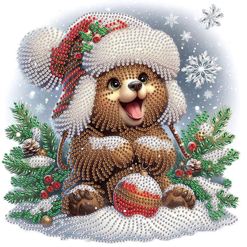 Diamond Painting - Partial Special Shaped - Cute Christmas puppy (30*30CM)