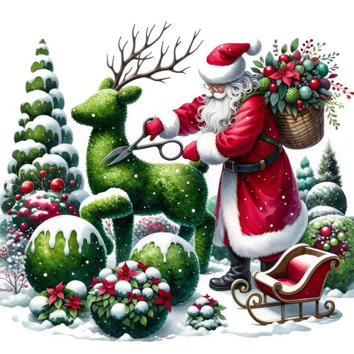 Diamond Painting - Full Round - Santa Claus pruning the garden (30*30CM)
