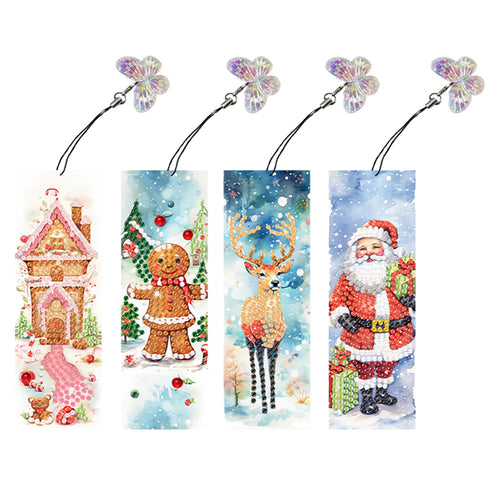 4Pcs Special Shape Christmas Tree Diamond Painting Bookmark for Reading Day Gift
