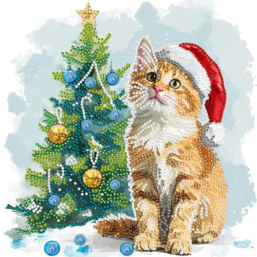 Diamond Painting - Partial Special Shaped - Christmas tree orange cat (30*30CM)