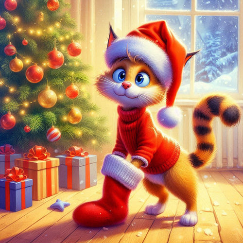 Diamond Painting - Full Round - Christmas cat (30*30CM)