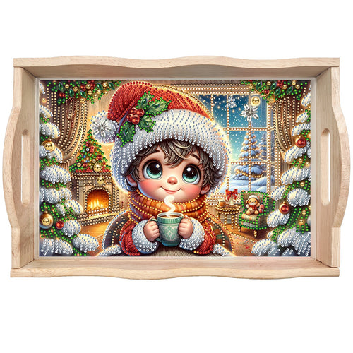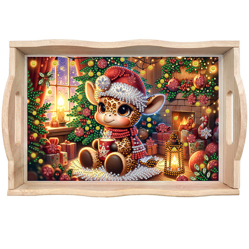 Wooden Christmas Rabbit 5D Diamond Painting Tray Art Craft for Desk Coffee Table