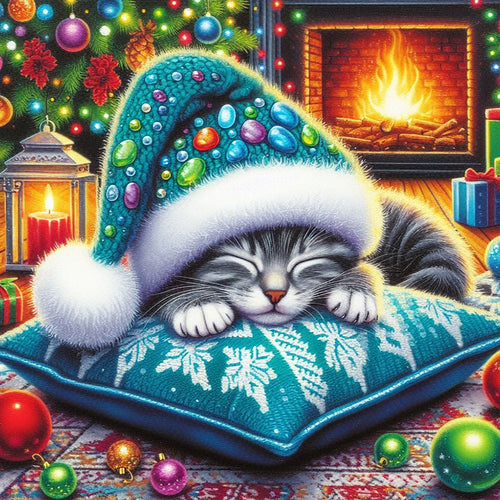 Diamond Painting - Full Round - Christmas cat (40*40CM)