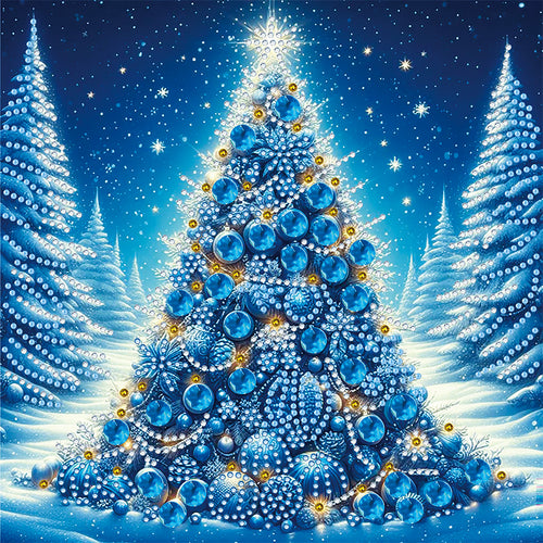 Diamond Painting - Partial Special Shaped - Blue Christmas tree in the snow (30*30CM)