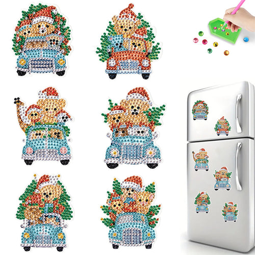 6Pcs Christmas Bear Car Fridge Stickers Diamond Painting Art Magnets Decals