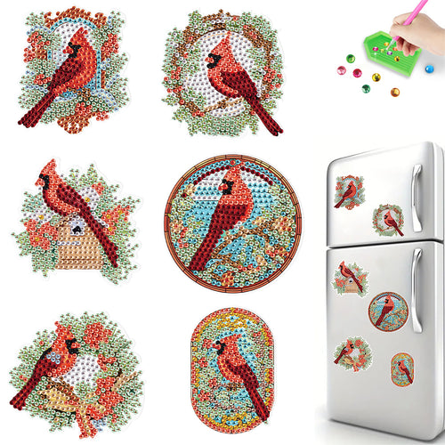 6Pcs Christmas Cardinal Fridge Stickers Diamond Painting Art Magnets Decals