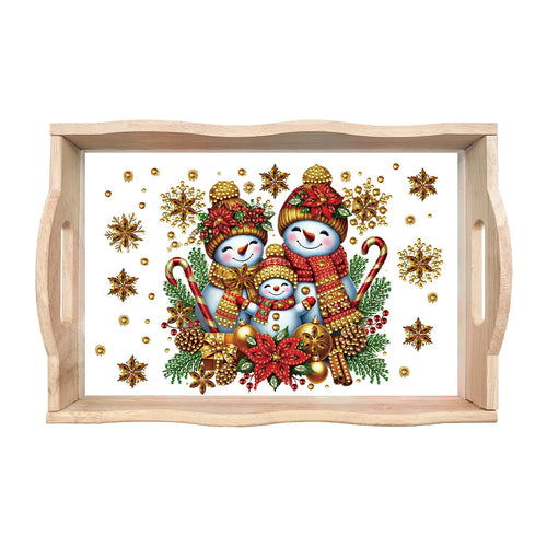 Christmas Diamond Painting Wooden Serving Tray Home Decoration (Snowman Family)