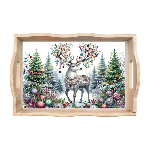 Christmas Diamond Painting Wooden Serving Tray Home Decoration (Blue Elk)