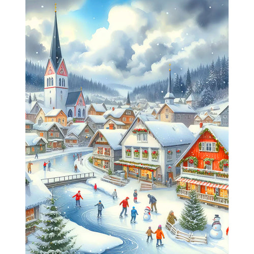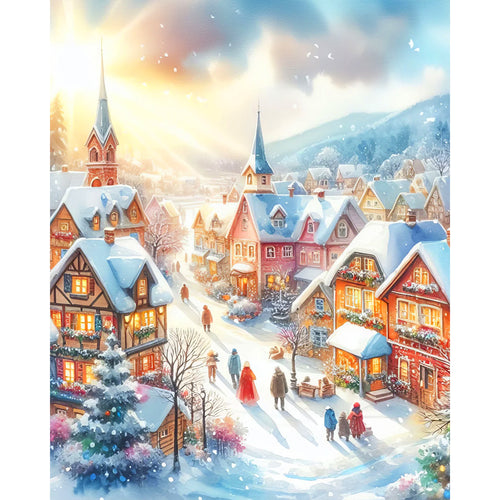 Diamond Painting - Full Round - Small town Christmas snow scene (40*50CM)