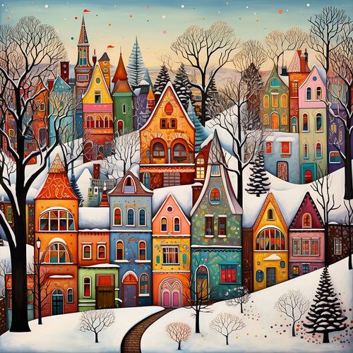 Diamond Painting - Full Round - Snowy town streets (40*40CM)
