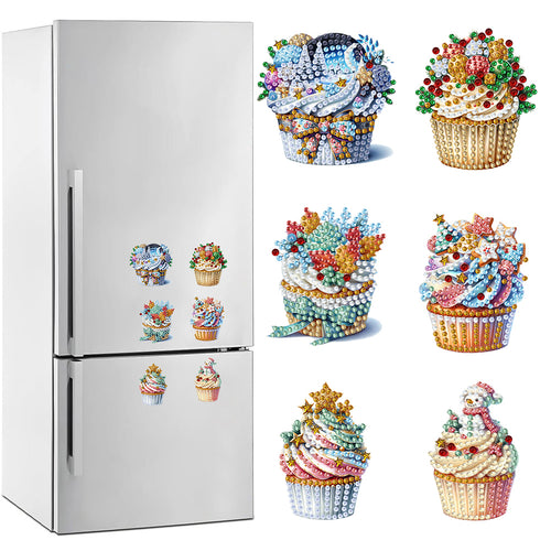 6Pcs Acrylic Special Shape Christmas Cake Diamond Painting Fridge Magnets