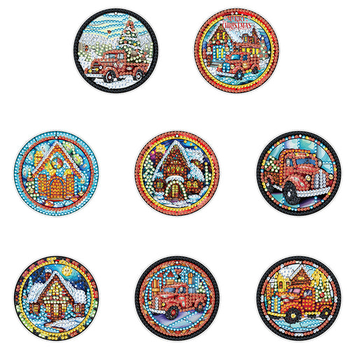 8 PCS Acrylic Christmas Tree Single-Sided DIY Diamond Painting Hanging Pendant