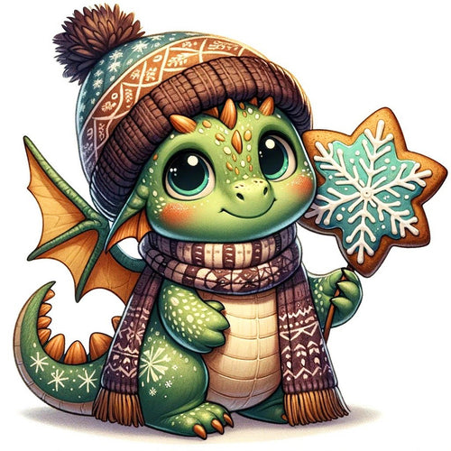 Diamond Painting - Full Round - Dragon holding Christmas cookies (30*30CM)
