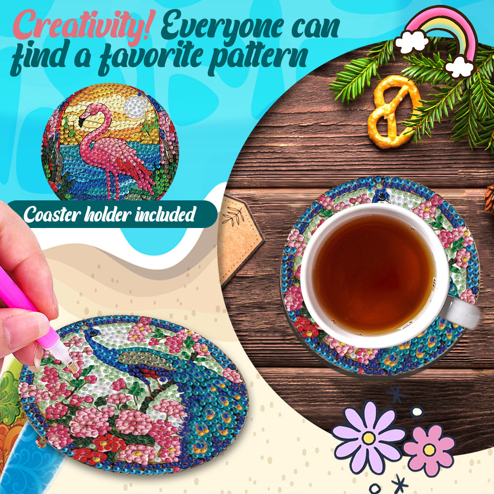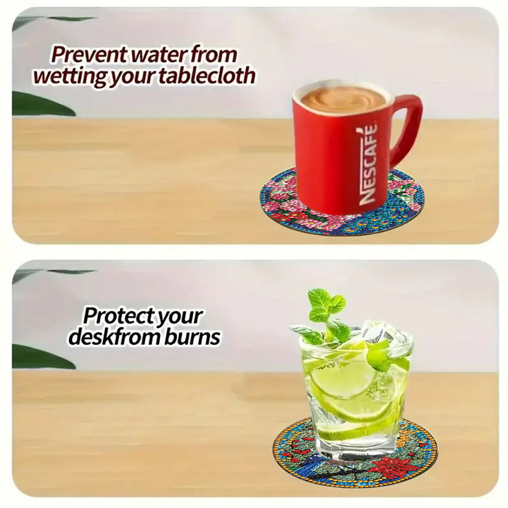 1.Sturdy Craftsmanship: Made from robust wood, these diamond painting coasters are meticulously handcrafted to fit glasses, cups, mugs, or bottles perfectly. Their solid construction ensures reliable performance, providing a stable surface for all your drinkware needs.