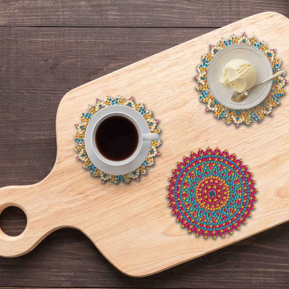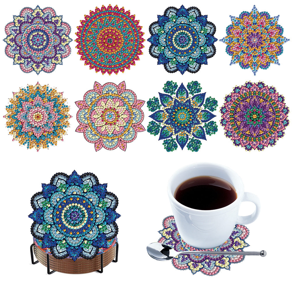 8Pcs Wooden Mandala 5D Diamond Painting Coasters Kit for Adults Beginners