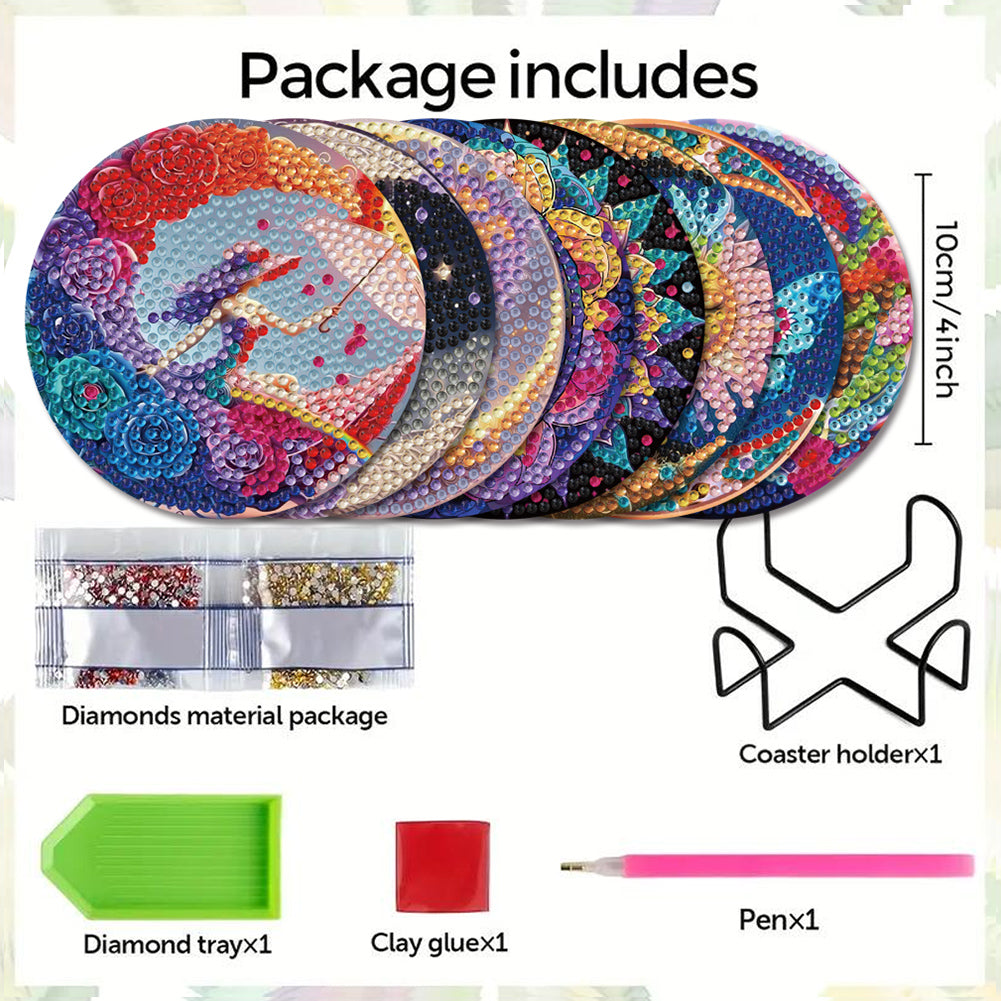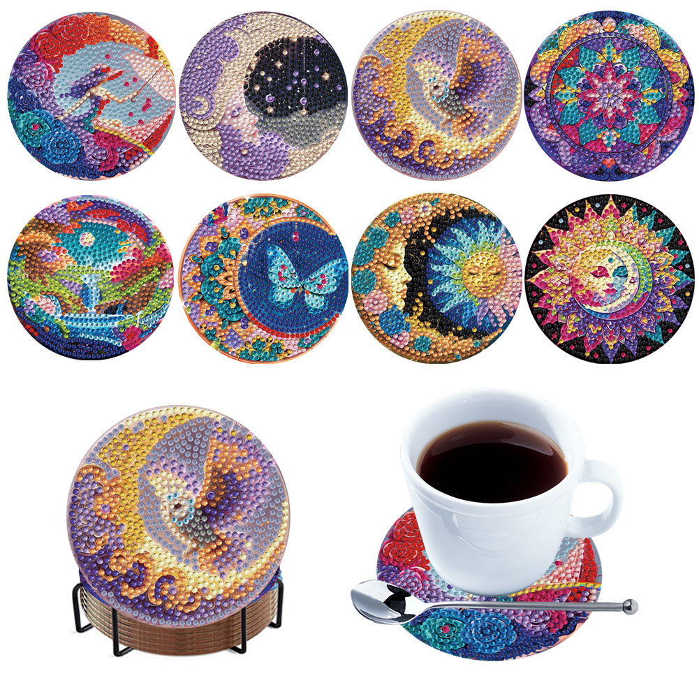 1.Sturdy Craftsmanship: Made from robust acrylic , these diamond painting coasters are meticulously handcrafted to fit glasses, cups, mugs, or bottles perfectly. Their solid construction ensures reliable performance, providing a stable surface for all your drinkware needs.