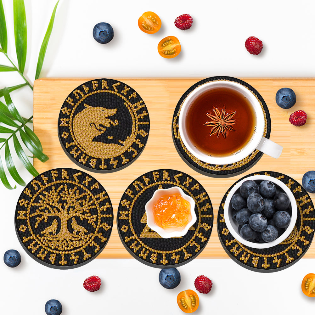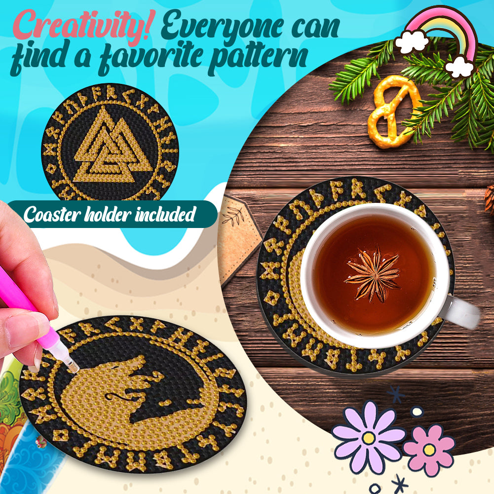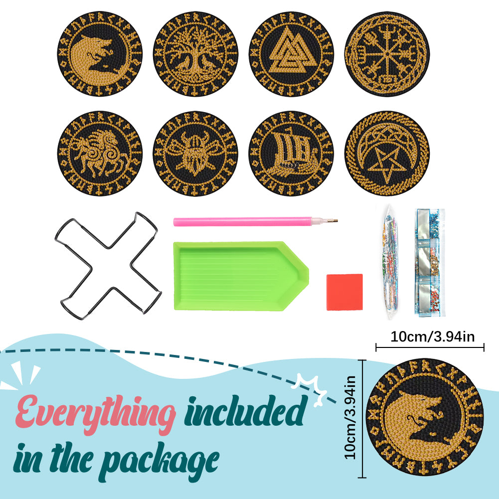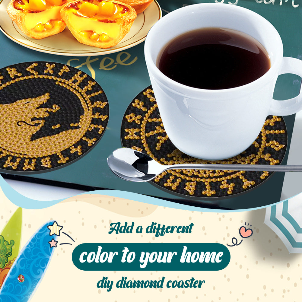 Diamond Painting Art Coaster Kit Acrylic Round with Holder (8pcs Black Gold)