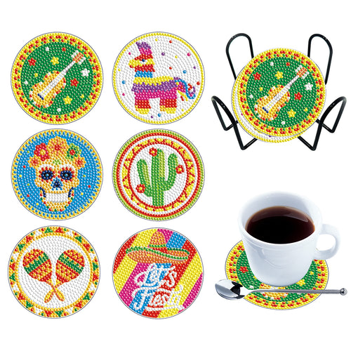 6PCS Diamond Crafts Coasters Diamond Painting Art Coasters (Hippie Skeleton)