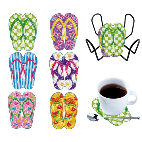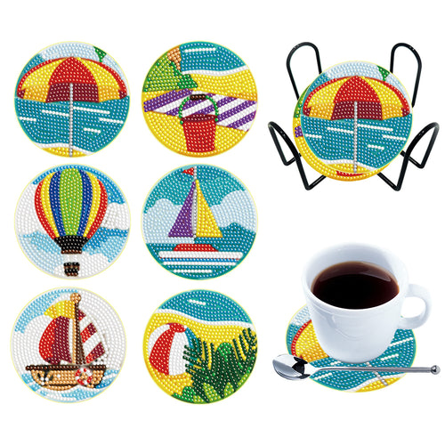 6PCS Diamond Painting Art Coasters with Holder Wooden (Beach Holiday)
