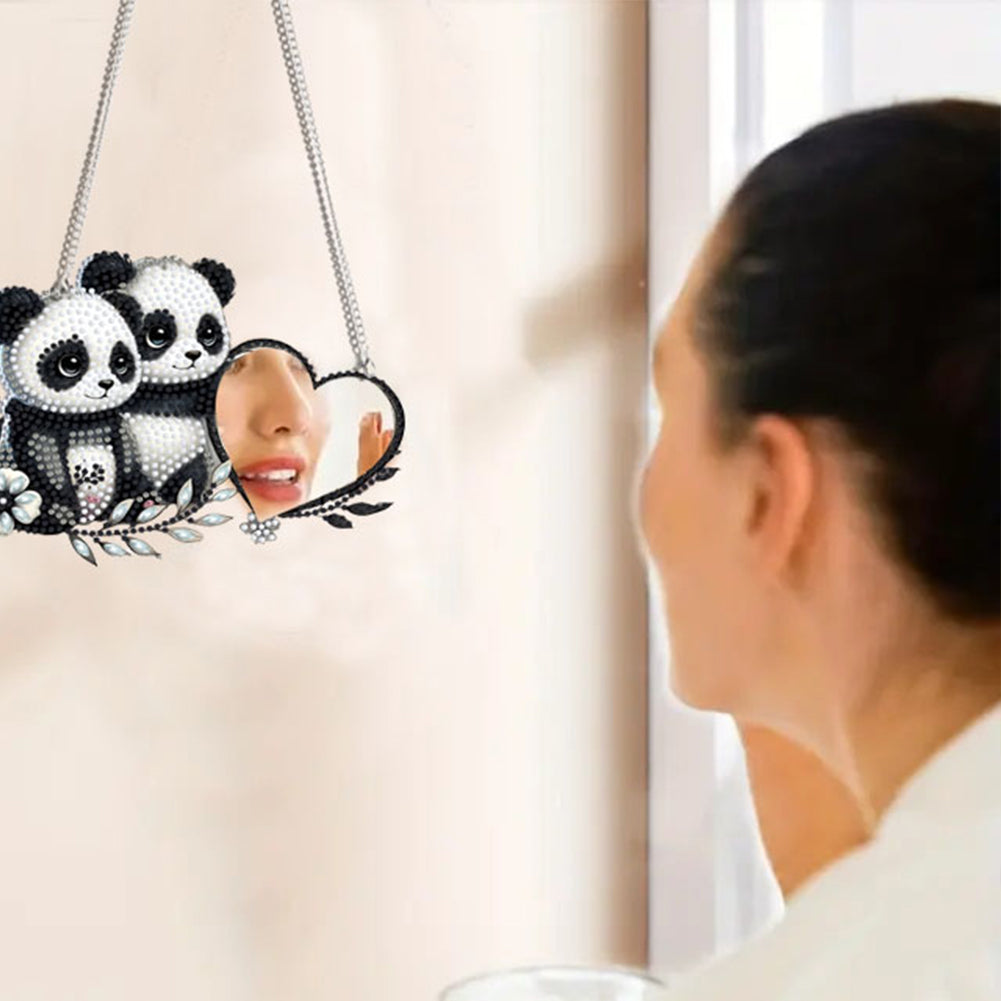 2pcs 2D Flat DIY Panda Owl Hanging Mirror Diamond Art Kits Wall Door Decoration