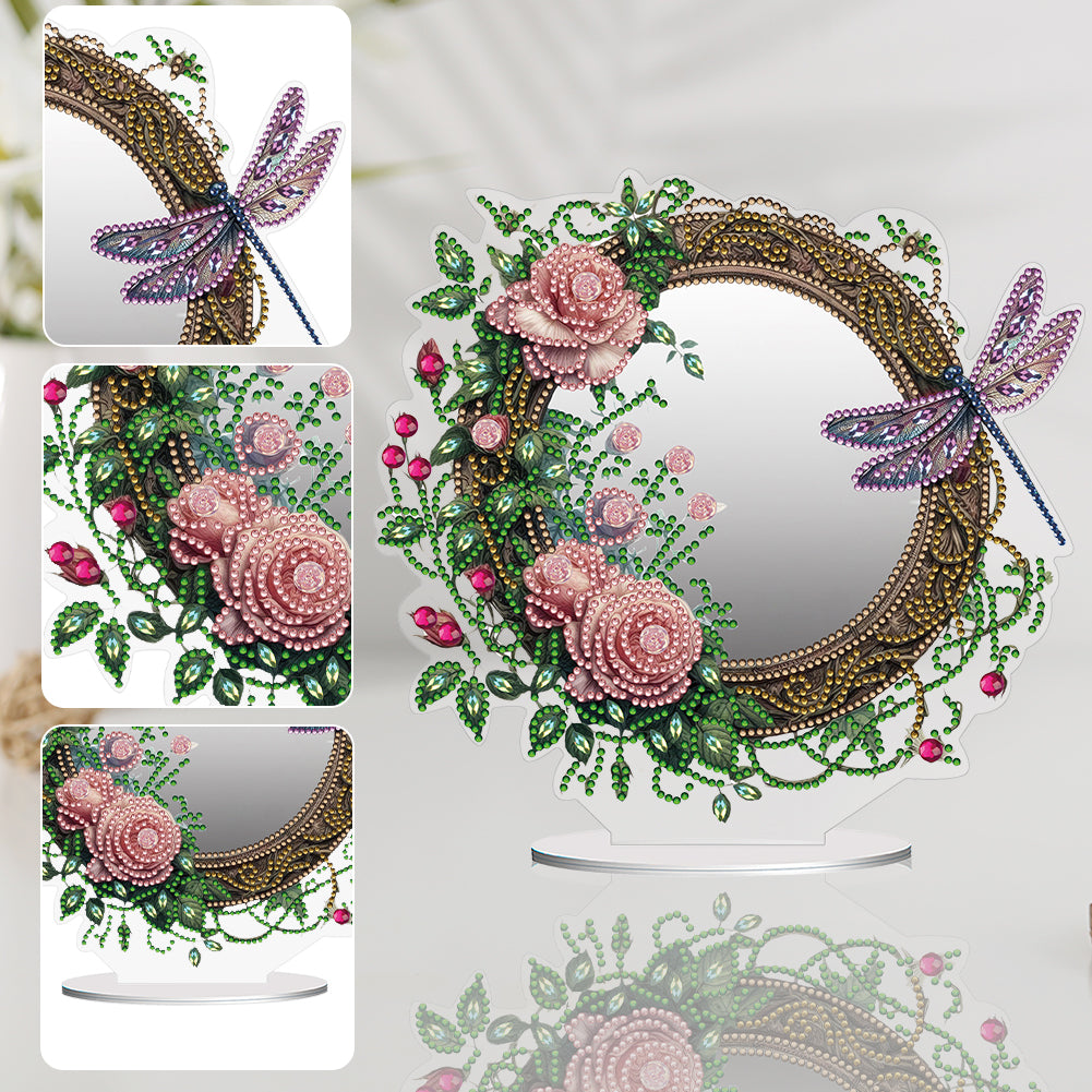 Acrylic Flowers Dragonfly DIY Diamond Art Mirror Crystal Diamond Painting Mirror