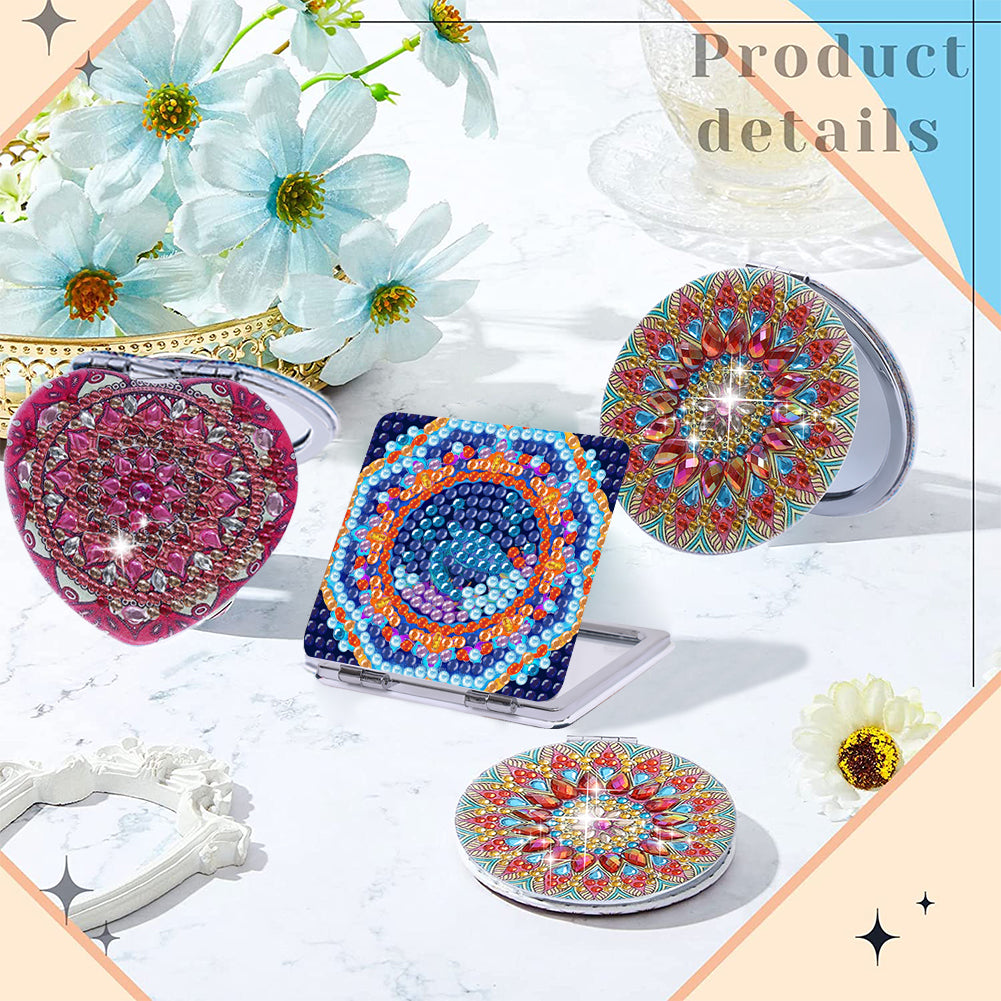 Material: Small mirror (stainless steel+chrome plating+thickened leather wrapping)+resin diamond shaped diamond