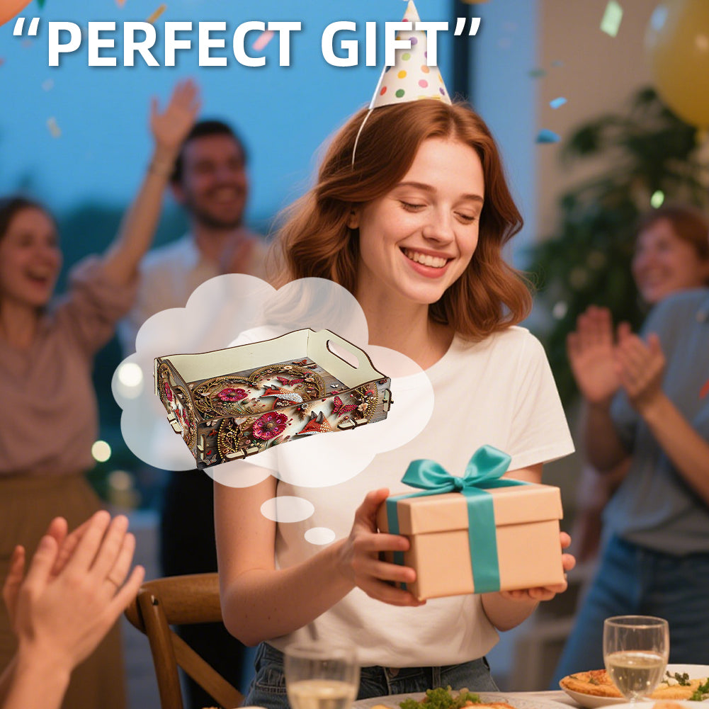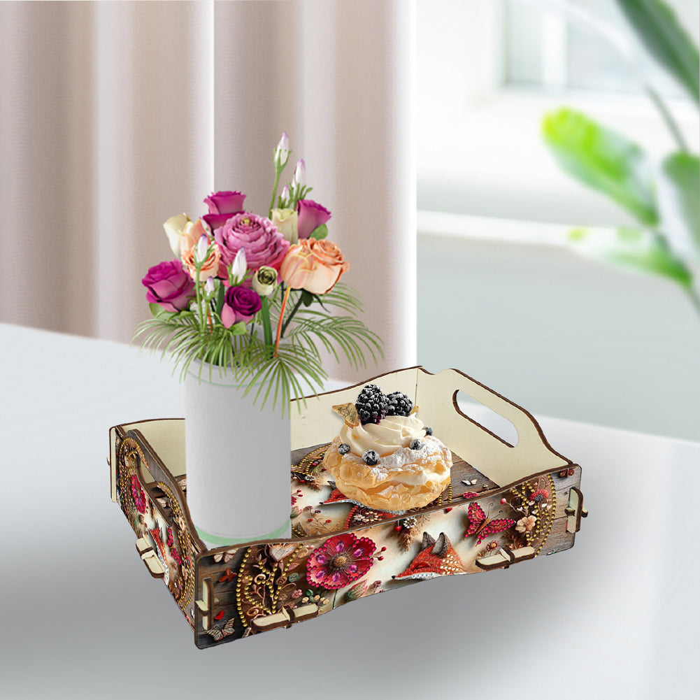 5D DIY Fox Diamond Painting Wooden Serving Tray with Handle for Coffee Table