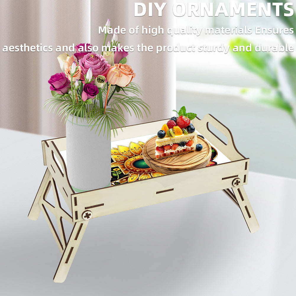 5D DIY God Diamond Painting Wooden Serving Tray with Handle for Coffee Table