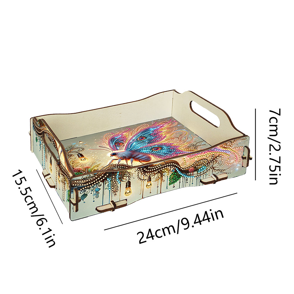 5D DIY Insect Diamond Painting Wooden Serving Tray with Handle for Coffee Table