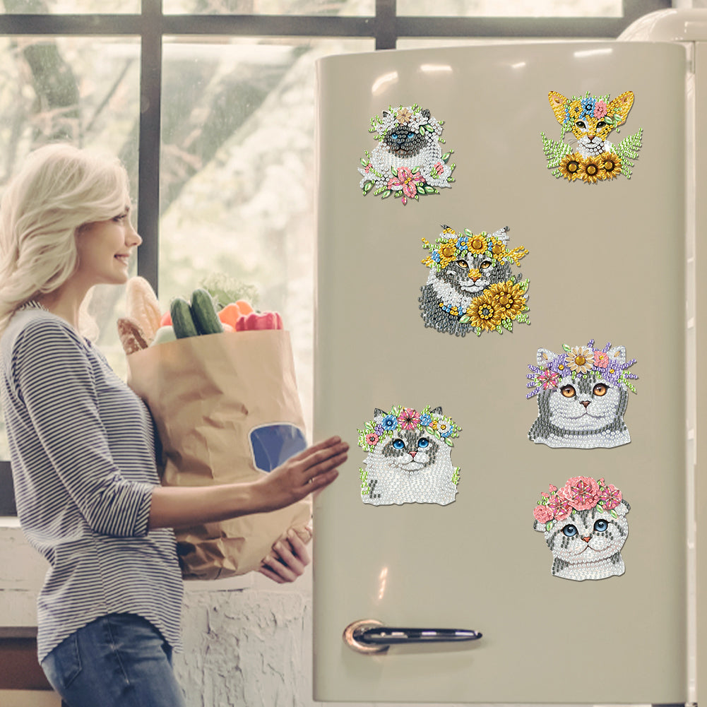 6 Pieces/set Cat DIY Diamond Painting Magnets Refrigerator Diamond Art Magnets Decals for Fridge Whiteboards Car Mailbox Decor