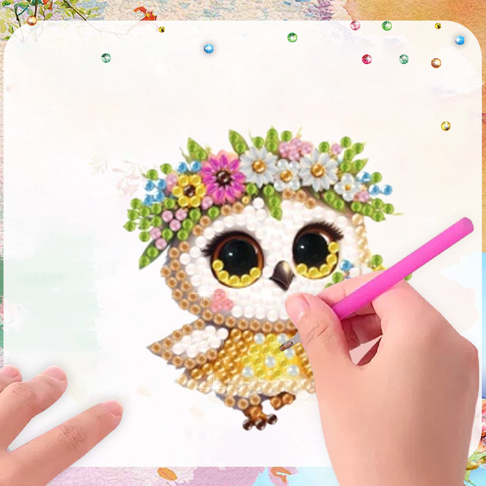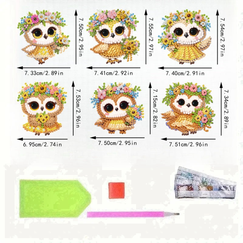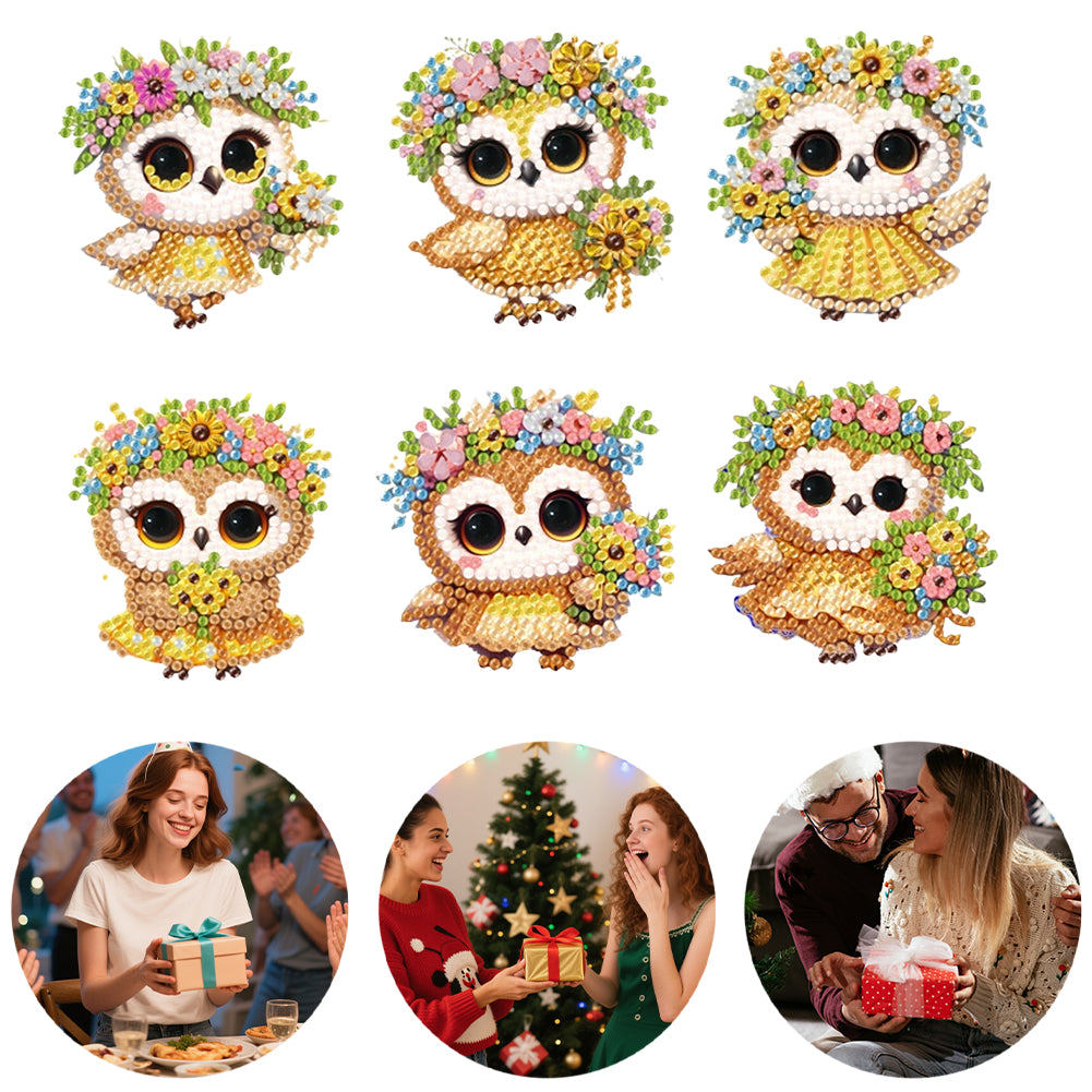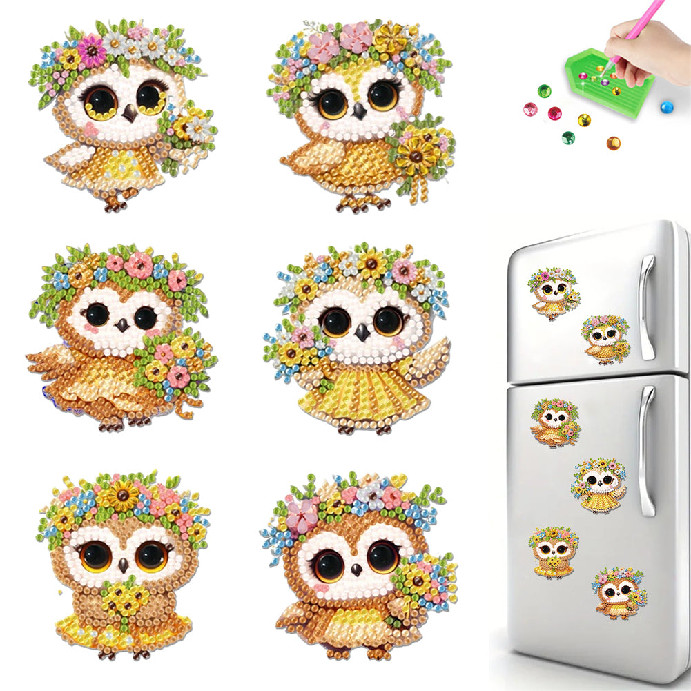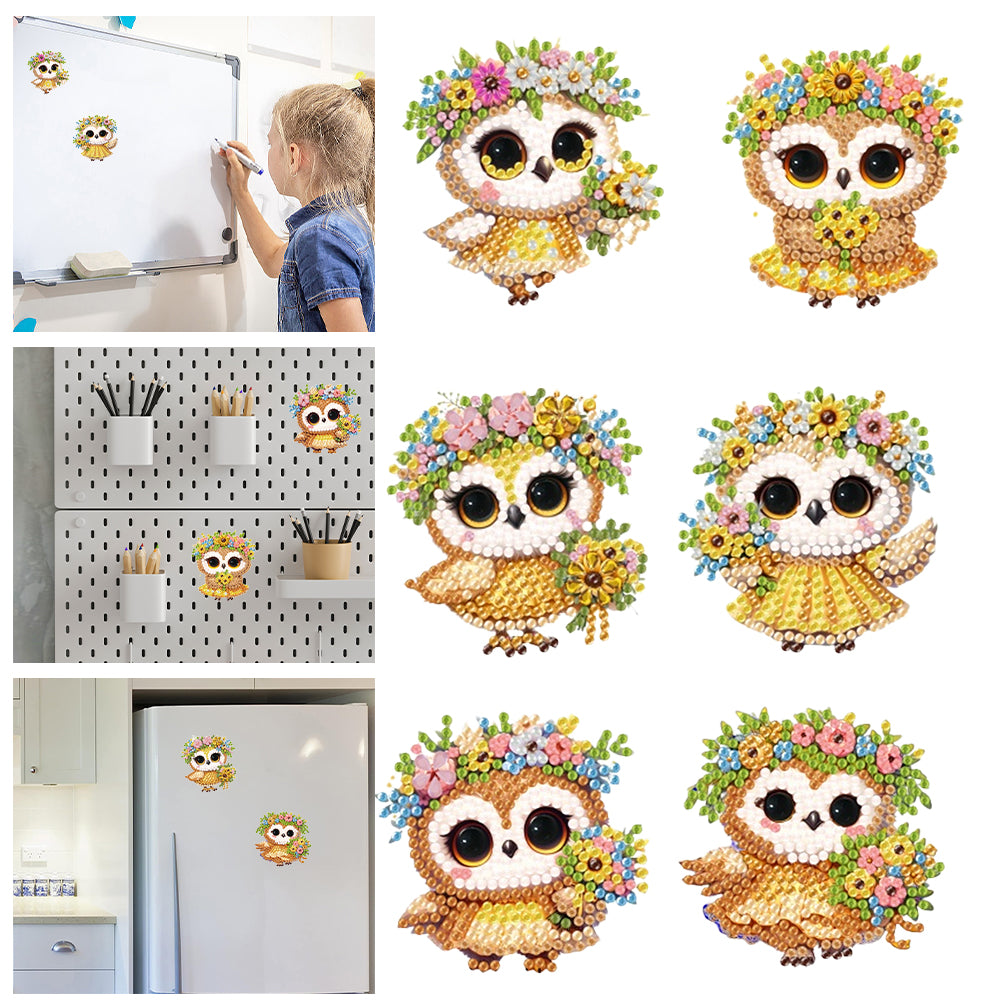 6Pcs Acrylic 2D Flat Owl Girl Diamond Painting Fridge Magnet for Whiteboard