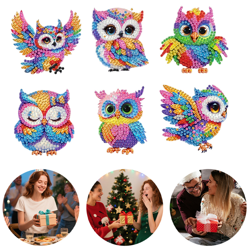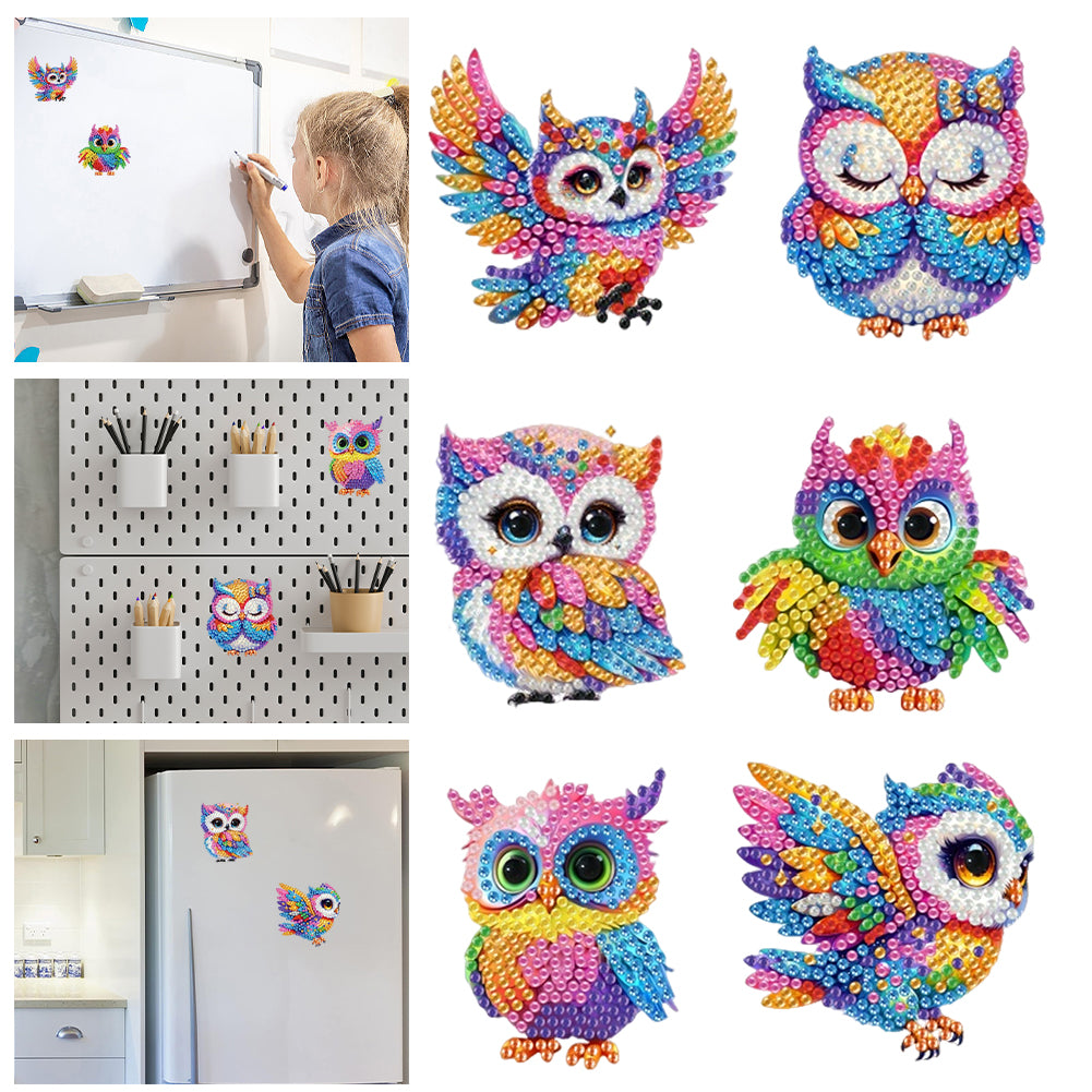 6Pcs Acrylic 2D Flat Owls Diamond Painting Fridge Magnet for Fridge Whiteboard