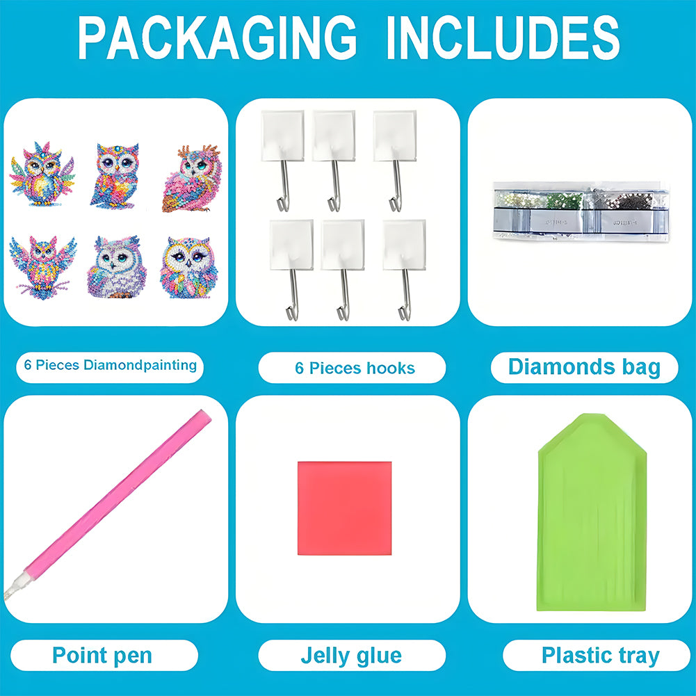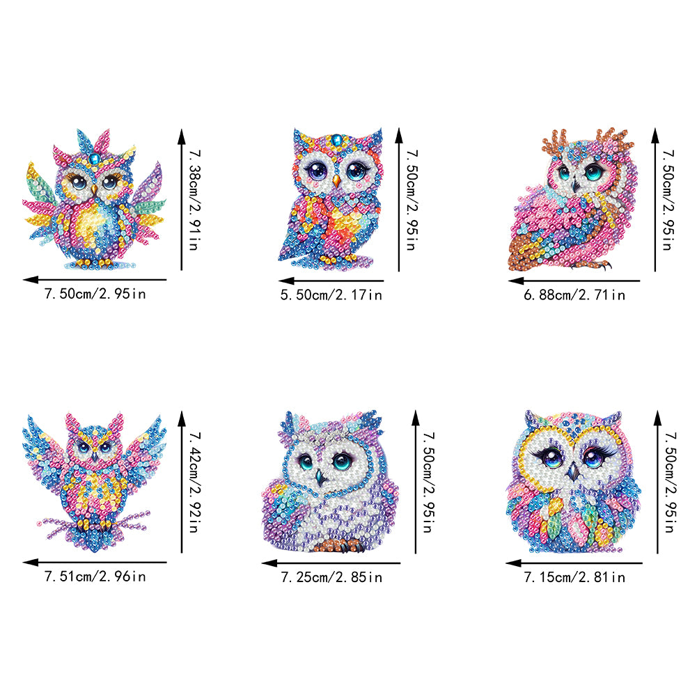 6Pcs Acrylic Colorful Owl Diamond Art Craft Wall Hooks Rhinestone Painting Coat Hook Diamond Painting Key Hooks DIY Crafts Decor