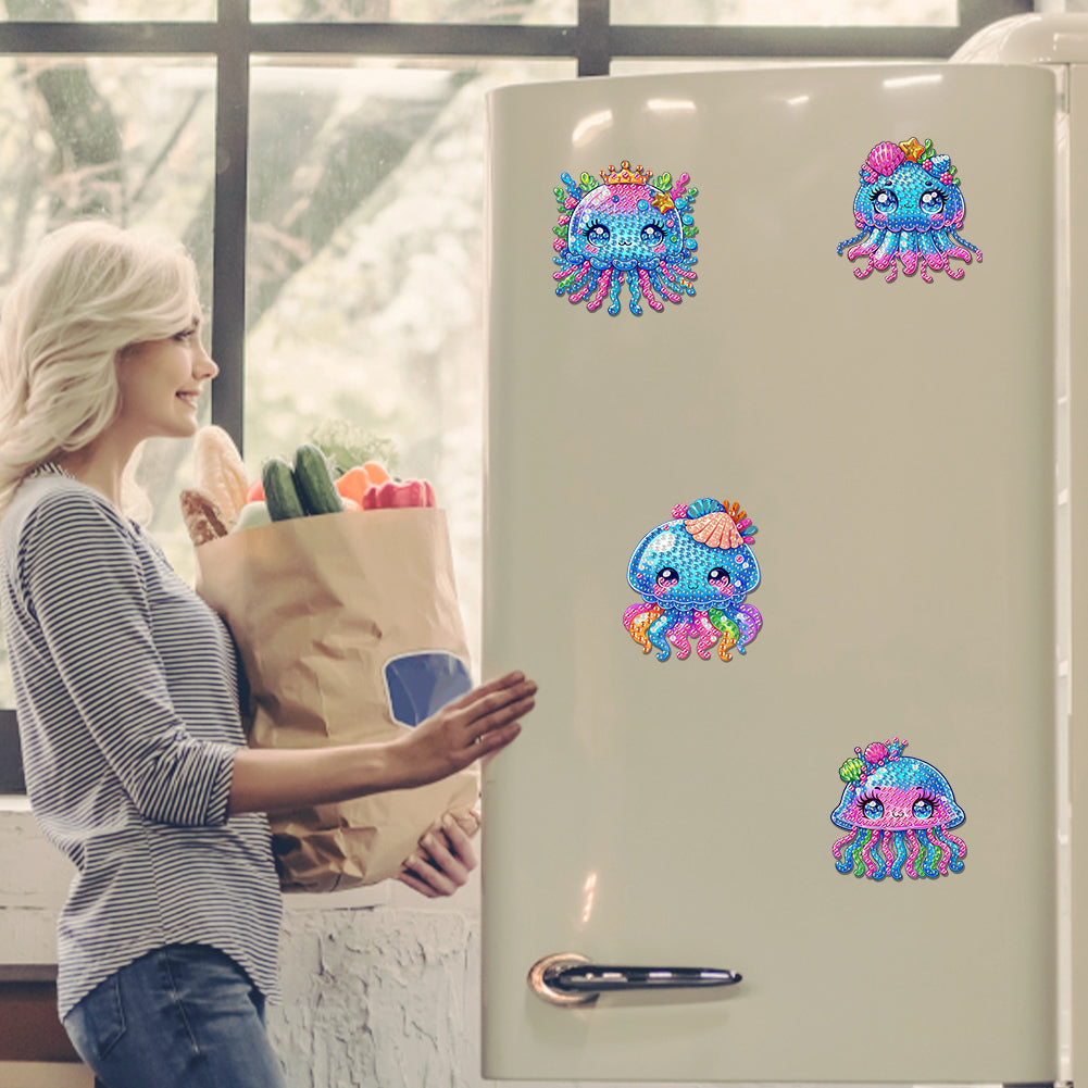 4Pcs Diamond Painting Refrigerator Magnets Diamond Art Kits for Adults (U)