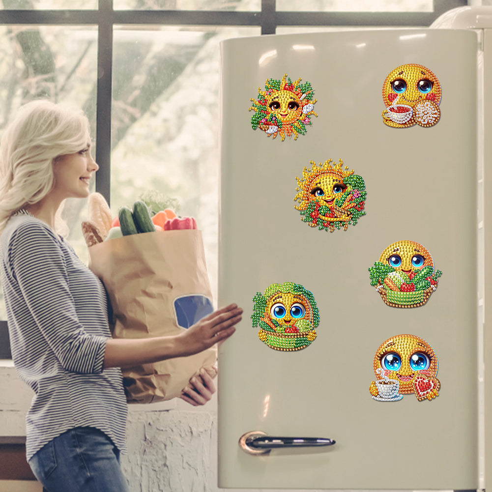 6Pcs DIY Diamond Painting Refrigerator Magnets Diamond Art Kits for Adults (Sun)