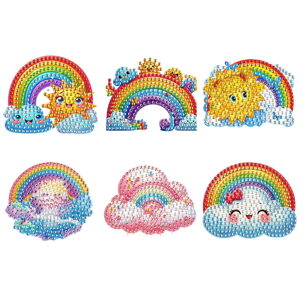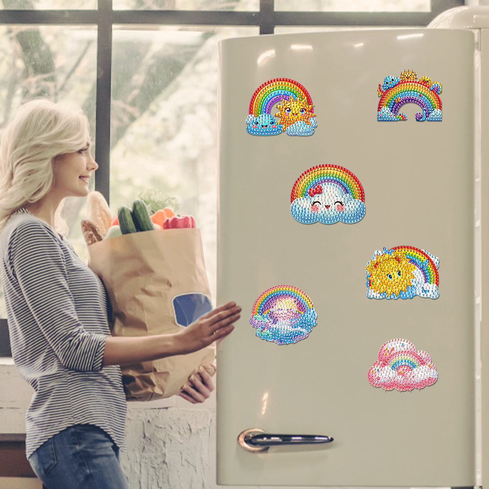 6Pcs DIY Diamond Painting Refrigerator Magnets Diamond Art Kits (Rainbow)