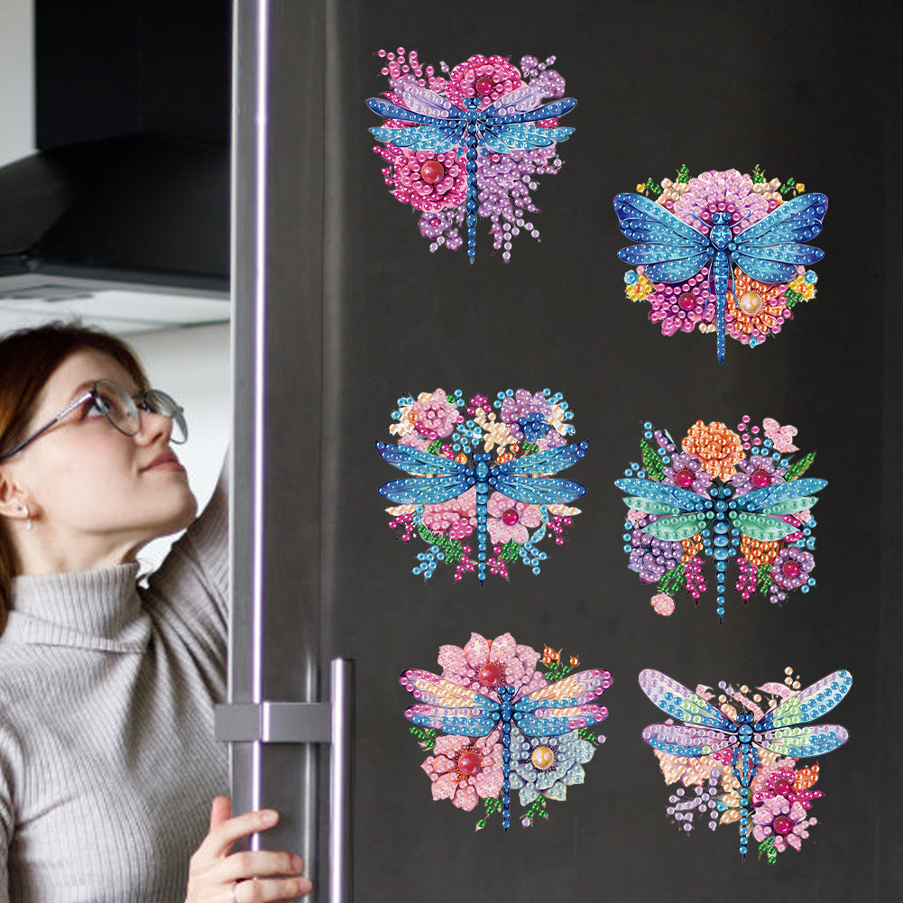 6 Pieces/set Dragonfly DIY Diamond Painting Magnets Refrigerator Diamond Art Fridge Magnet Diamond Art Magnets Decals for Fridge Whiteboards Car Mailbox Decor
