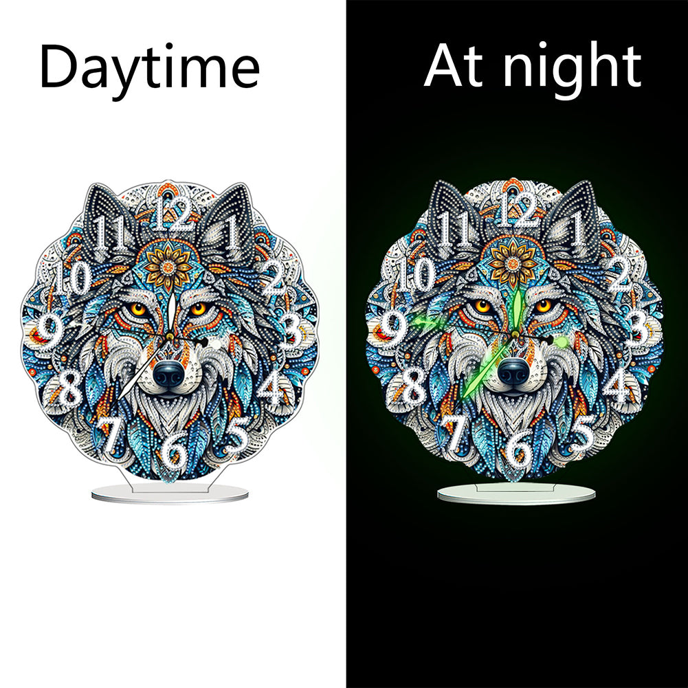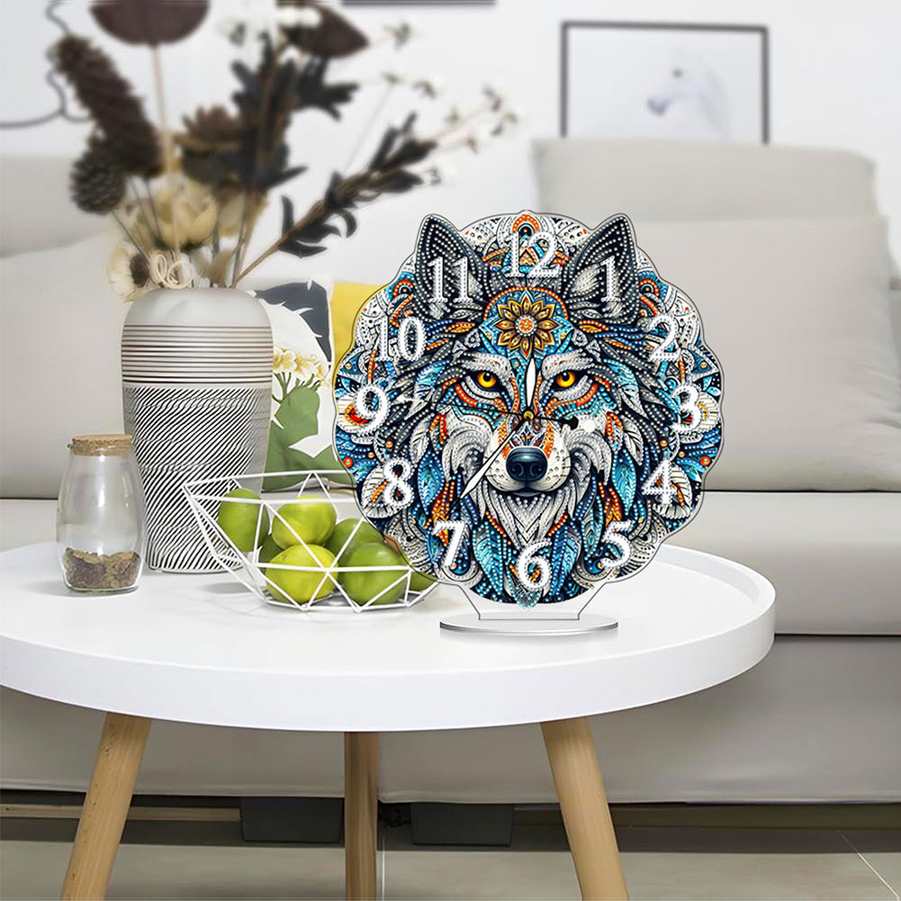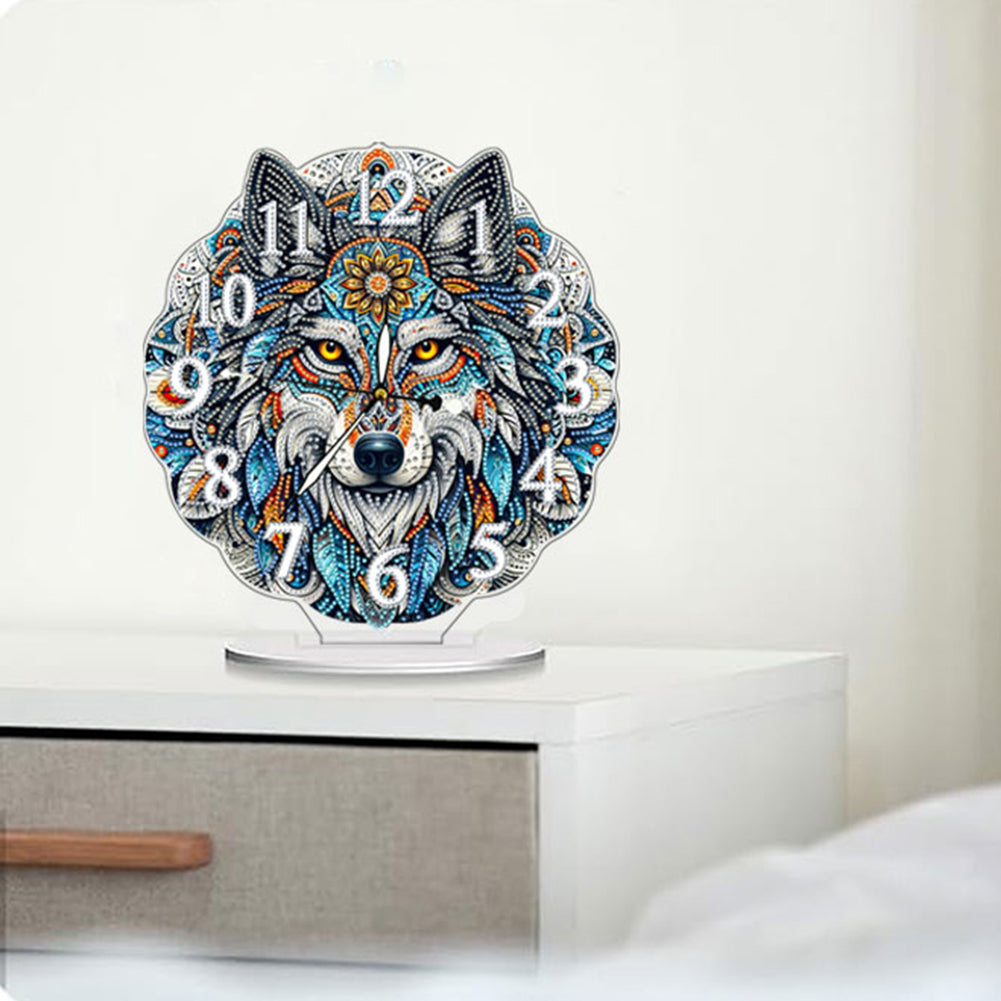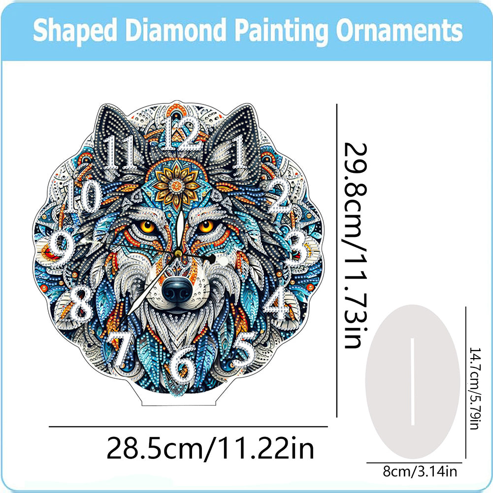 Acrylic Special Shape Indian Wolf Diamond Painting Art Clock Ornaments Kit