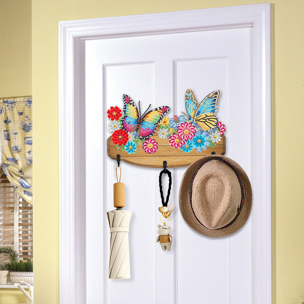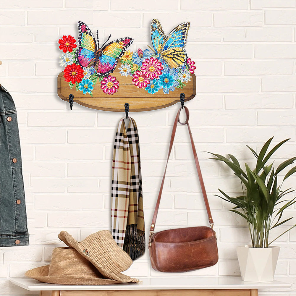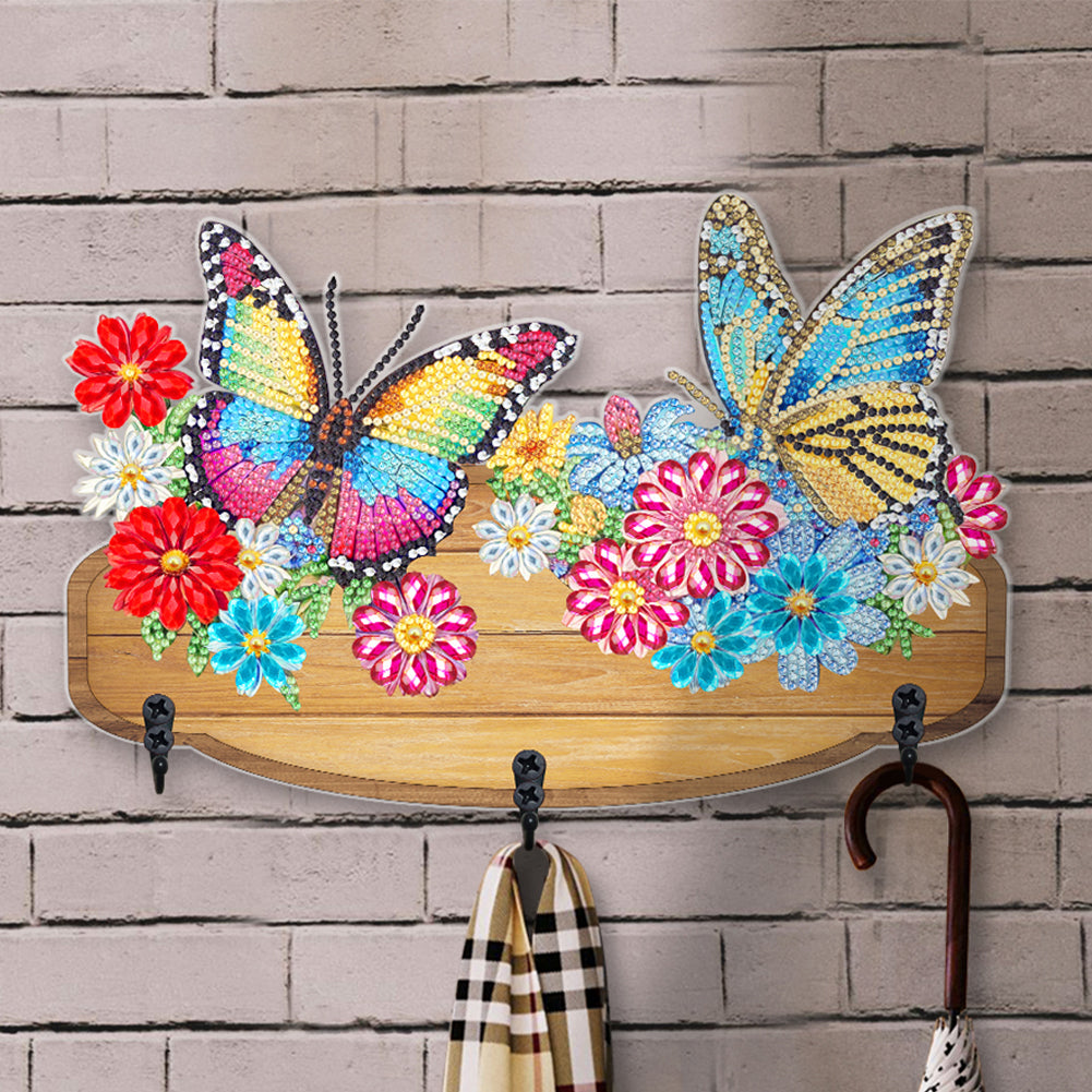 Butterfly Flower Diamond Art Craft Wall Hooks DIY Diamond Painting Art Hooks 3 Hooks Diamond Painting Hook Rail DIY Crafts Decor