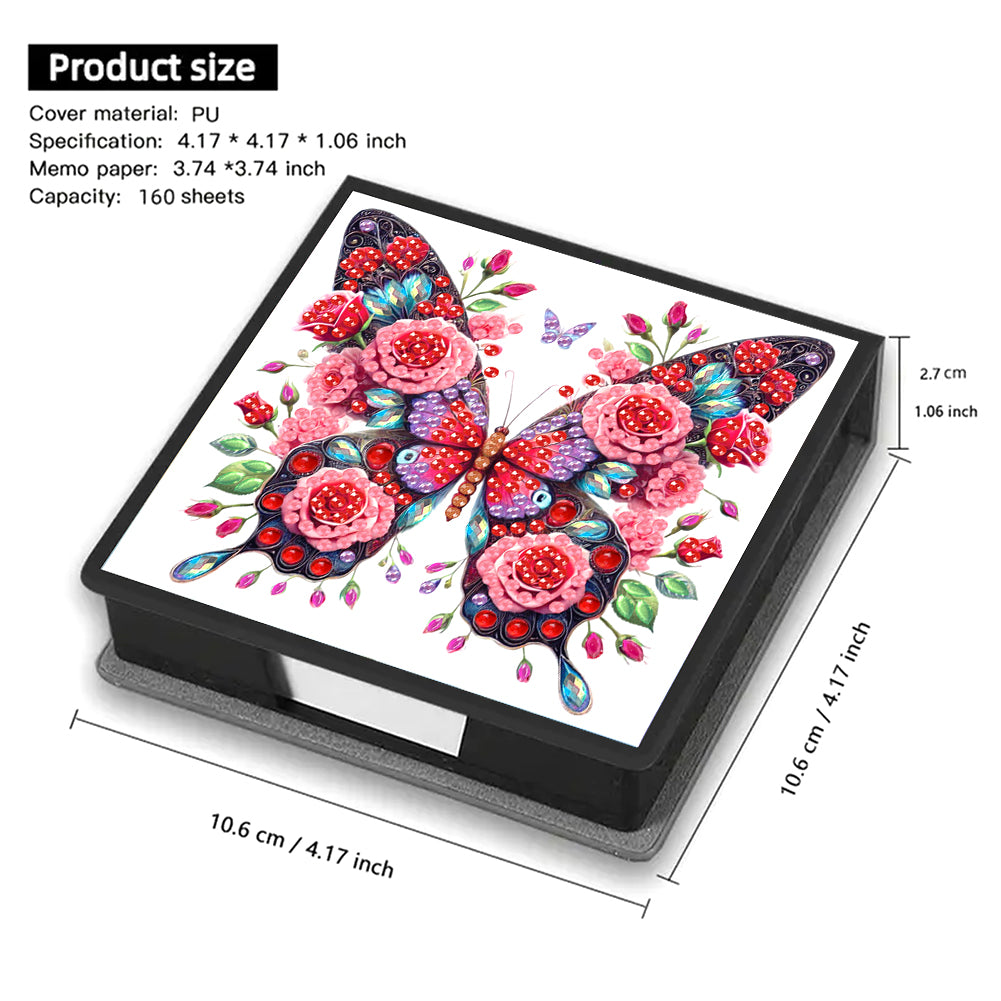 Butterfly Leather Diamond Art Note Box with 160 Sheets of Paper for Beginners
